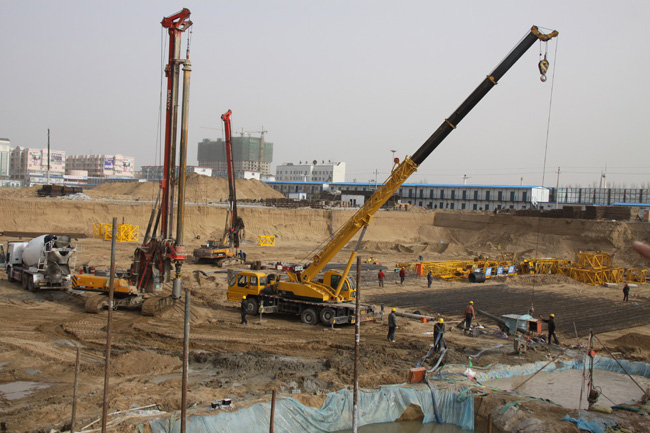 達(dá)拉特鄂爾多斯廣場項(xiàng)目施工現(xiàn)場 打樁