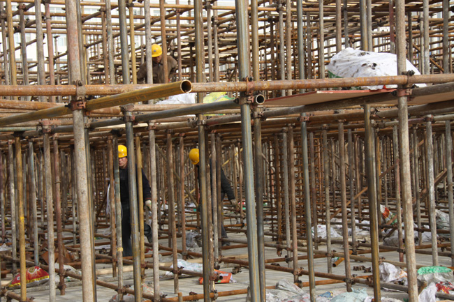 達(dá)拉特鄂爾多斯廣場項(xiàng)目施工現(xiàn)場 搭架子
