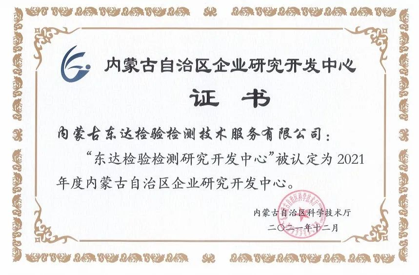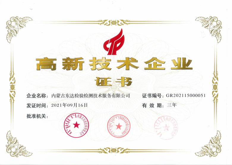 近日,內(nèi)蒙古東達(dá)檢驗(yàn)檢測技術(shù)服務(wù)有限公司順利通過評審認(rèn)定,晉升為國家高新技術(shù)企業(yè)并成為內(nèi)蒙古自治區(qū)企業(yè)研發(fā)中心,自此邁上了更高的發(fā)展臺階。