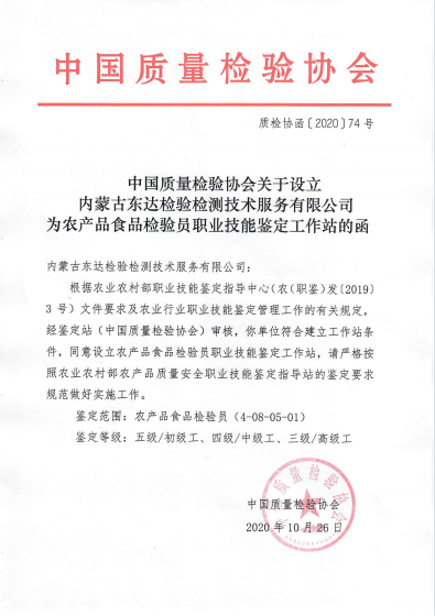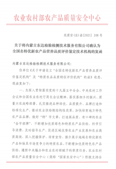 東達(dá)檢驗(yàn)檢測公司成立以來,重點(diǎn)投入人力物力從事科技研發(fā)及技術(shù)推廣 工作。2021年初,公司與內(nèi)蒙古大學(xué)乳制品質(zhì)量安全控制技術(shù)教育部工程研究中心聯(lián)合建立了“內(nèi)蒙古乳制品產(chǎn)學(xué)研共建實(shí)驗(yàn)室”,并以“食品安全快速檢測技術(shù)”為課題申報(bào)了2021年度鄂爾多斯科技計(jì)劃項(xiàng)目。在服務(wù)企業(yè)方面,公司與鄂托克前旗農(nóng)牧局合作,聯(lián)合制定了鄂托克前旗羊肉地方標(biāo)準(zhǔn)體系,目前立項(xiàng)完成正在審定階段。2021年初公司取得了“食品農(nóng)產(chǎn)品檢驗(yàn)員”職業(yè)技能鑒定工作站資格,成為內(nèi)蒙古唯一一家具有該資質(zhì)的第三方機(jī)構(gòu)?;诠镜目蒲袡z測實(shí)力,2021年底經(jīng)過農(nóng)業(yè)農(nóng)村部農(nóng)產(chǎn)品質(zhì)量安全中心批準(zhǔn),公司成為“全國名特優(yōu)新農(nóng)產(chǎn)品營養(yǎng)品質(zhì)鑒定機(jī)構(gòu)”與“特質(zhì)農(nóng)品品質(zhì)特征評價(jià)機(jī)構(gòu)”,成為內(nèi)蒙古第一家取得該資質(zhì)的三方檢測機(jī)構(gòu),也是全國第六家取得該資質(zhì)的企業(yè)第三方實(shí)驗(yàn)室。